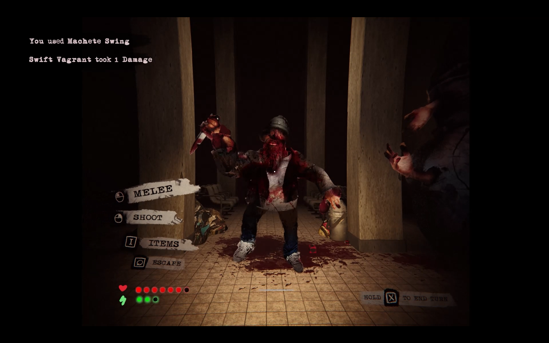 In this demo, you will explore the first of many levels in our game: an abandoned bus station. No sign of life remains other than a strange song playing over the speakers. But something lies in wait within these concrete walls. Something that would make a lesser man's skin crawl.